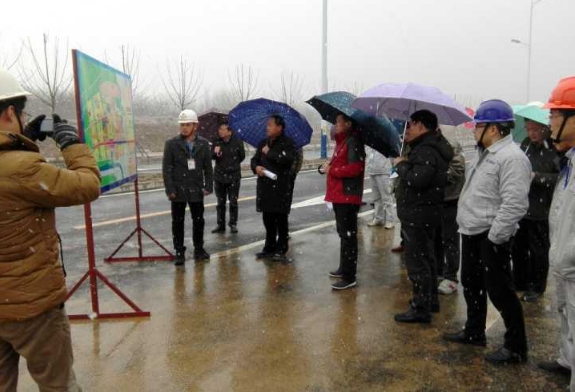 “1月20日至22日我省江淮南部和江南部分地區(qū)將有大雪到暴雪;22日至24日全省有強降溫;24日至25日全省最低氣溫-10℃至-16℃。”日前,一則寒雪消息牽動著合肥全市各職能部門的呼吸,2016年1月22日下午,合肥市交通運輸局局長方正杰、蜀山區(qū)區(qū)長葛斌一行在合肥市公路管理局副局長朱兵兵、合肥路橋公司總經(jīng)理楊楓的陪同下,冒雪前往望江西路項目檢查指導(dǎo)工作。