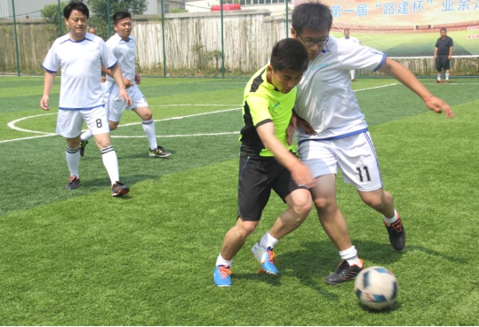 首頁 > 新聞中心 > 詳細新聞 5月14日,第一屆“路建杯”足球聯(lián)賽第二輪在集團公司職工活動中心進行,此輪賽事合肥路橋隊對陣安徽國順隊。經(jīng)過60分鐘激烈的激戰(zhàn),通過19號球員王君的兩個精彩進球,合肥路橋隊以2:0勝出,取得了開賽以來的首場勝利。
