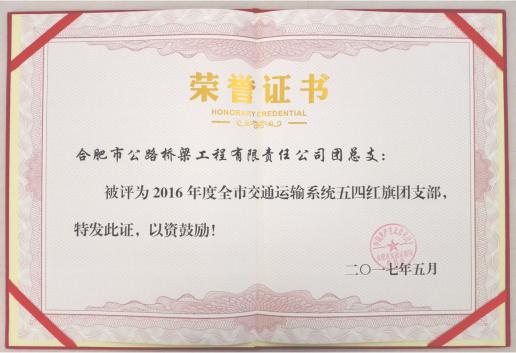 首頁 > 新聞中心 > 詳細(xì)新聞 近日,合肥市交通局對(duì)2016年度全系統(tǒng)優(yōu)秀團(tuán)支部進(jìn)行了表彰,合肥路橋公司團(tuán)支部榮獲“五四紅旗團(tuán)支部”稱號(hào)。