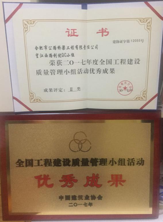 一直以來,合肥路橋公司高度重視項目管理,狠抓質(zhì)量管理與創(chuàng)新,積極開展QC小組活動,激發(fā)廣大一線職工的積極性和創(chuàng)造性,有效解決了施工中的疑難問題,改進(jìn)了質(zhì)量, 為工程建設(shè)優(yōu)質(zhì)高效推進(jìn)打下了堅實的基礎(chǔ)。