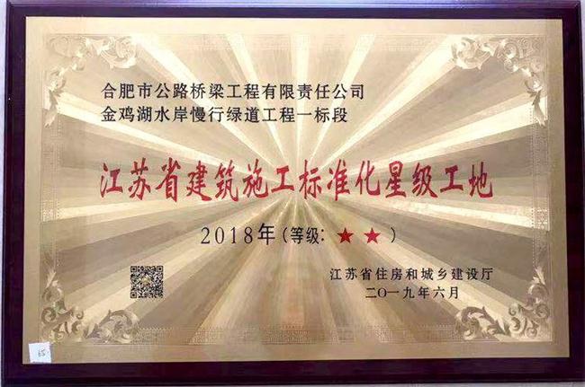 首頁 > 新聞中心 > 詳細(xì)新聞近日,在江蘇省住房和城鄉(xiāng)建設(shè)廳公布的關(guān)于2018年江蘇省建筑施工標(biāo)準(zhǔn)化星級(jí)工地項(xiàng)目名單中,我公司承建的金雞湖水岸慢行綠道工程一標(biāo)段榮獲“江蘇省建筑施工標(biāo)準(zhǔn)化星級(jí)工地”榮譽(yù)稱號(hào)。