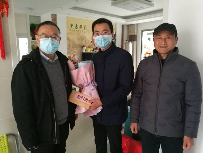 首頁 > 新聞中心 > 詳細新聞3月5日上午,合肥路橋公司董事長楊楓一行來到員工孫巍的家中,孫巍的愛人是支援武漢醫(yī)務人員,一直堅持堅守在抗擊疫情的第一線。得知這一情況后,公司給醫(yī)護人員家屬們送來了慰問金和鮮花。在走訪中,董事長楊楓與其家屬親切交談,傾聽他們的生活情況,了解他們工作中的困難,表示會盡最大努力幫助他們解決生活、工作中的難題,并通過家屬向遠離家庭、奮戰(zhàn)一線的援鄂醫(yī)務人員表達敬意。