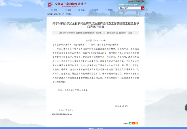 首頁 > 新聞中心 > 詳細新聞合肥路橋積極響應(yīng)省住建廳組織開展的農(nóng)村危房改造質(zhì)量安全排查工作,認真履行社會責(zé)任和政治責(zé)任,選派以孫巍和解陽光帶隊的專家小組,在對馬鞍山市和縣和當(dāng)涂縣進行了為期10天農(nóng)村危房改造“回頭看”工作中,出色的完成扶貧攻堅任務(wù),受到了當(dāng)?shù)刈》砍青l(xiāng)建設(shè)主管部門的肯定和民眾的一致好評。9月4日,合肥路橋在安徽省住房和城鄉(xiāng)建設(shè)廳關(guān)于對積極參加全省農(nóng)村危房改造質(zhì)量安全排查工作的建設(shè)工程企業(yè)受到通報表彰。