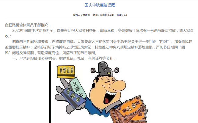 首頁 > 新聞中心 > 詳細(xì)新聞“2020年國慶中秋兩節(jié)將至,首先在此祝大家節(jié)日快樂,闔家幸福,身體健康!其次有一份兩節(jié)廉潔提醒,請大家查收!