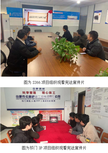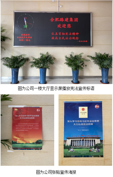 根據上級要求,結合工作實際和新冠肺炎疫情防控情況,在“憲法宣傳周”期間,合肥路橋采取多種宣傳方式,在公司張貼宣傳海報營造濃厚法治氛圍,并在一樓大廳電子顯示屏播放憲法宣傳標語。各分公司項目部組織職工學習憲法內容,并組織觀看憲法宣傳視頻,深刻領會憲法精神實質,要將尊法學法守法用法思想牢記于心,并帶領項目部成員開展尊崇憲法、學習憲法、遵守憲法、維護憲法、運用憲法的宣傳教育活動。在現場施工過程中,將法治思想運用其中,嚴格遵守法律法規(guī),確保施工安全進行。
