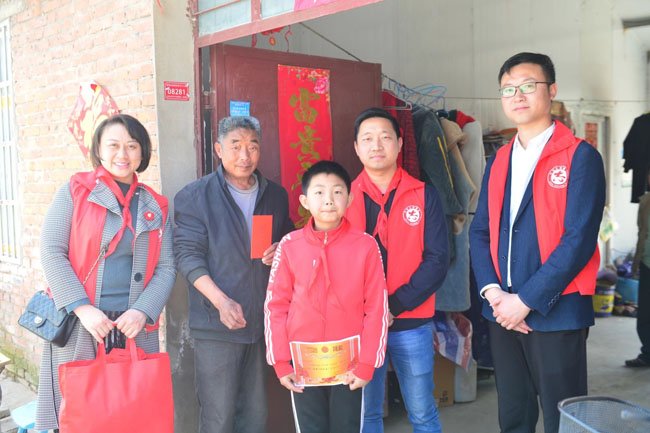 在學校的會議室,合肥路橋的志愿者們向來自貧困家庭的五位品學兼優(yōu)的學生每人發(fā)放1000元助學金,教導他們要珍惜來之不易的學習環(huán)境,以刻苦自勵的精神,學好知識、掌握本領、增長才干,為了祖國的明天譜寫青春華章。此外,還贈送他們書包、作業(yè)本等文具。獎學金發(fā)放儀式結束后,志愿者們隨后逐家進行家訪,深入了解五位學生家庭情況,對其及其家庭進行關懷。