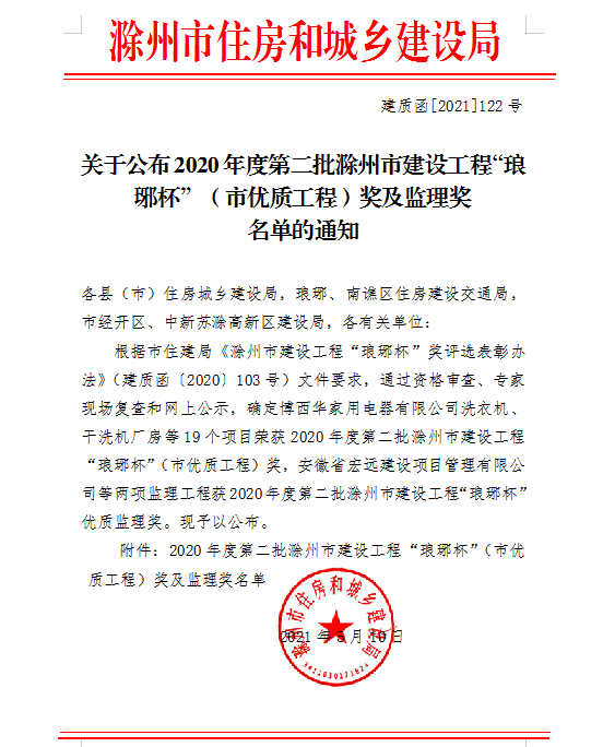 首頁(yè) > 新聞中心 > 詳細(xì)新聞近日,從滁州市住房和城鄉(xiāng)建設(shè)局網(wǎng)站獲悉,滁州市建設(shè)工程“瑯琊杯”獎(jiǎng)評(píng)選結(jié)果已公示,由合肥路橋承建的定遠(yuǎn)縣上海南路及爐橋東路工程(一標(biāo)段上海南路)榮獲2020年度第二批建設(shè)工程“瑯琊杯”(市優(yōu)質(zhì)工程)獎(jiǎng)。