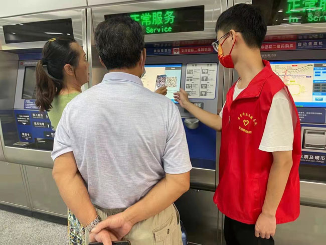 本次活動地點是四牌樓地鐵站,這里位于合肥繁華商業(yè)地段,周邊商業(yè)林立,上下班高峰期人流量巨大。合肥路橋的志愿者聯(lián)合廬陽區(qū)雛鷹志愿服務隊引導乘客正確的乘坐地鐵。志愿者們分工明確,從指導乘客掃安康碼、行程碼、測溫、安檢到站廳內購票、進站、文明候車等一系列動作規(guī)范、主動并且熱情,不僅維持了地鐵站良好的乘車秩序,也緩解了地鐵工作人員的工作壓力。