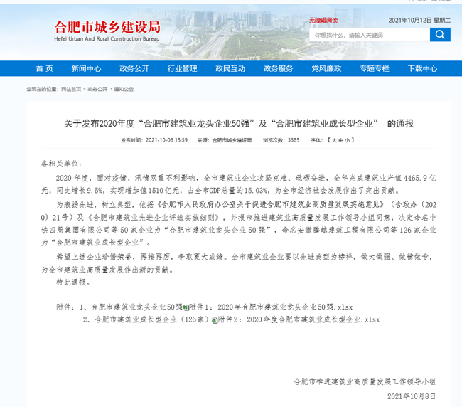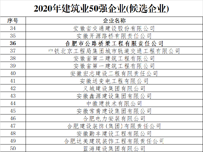 首頁 > 新聞中心 > 詳細(xì)新聞近日,合肥市城鄉(xiāng)建設(shè)局組織開展的合肥建筑業(yè)龍頭企業(yè)50強評選結(jié)果出爐,合肥路橋榮登合肥建筑業(yè)龍頭企業(yè)50強榜單。