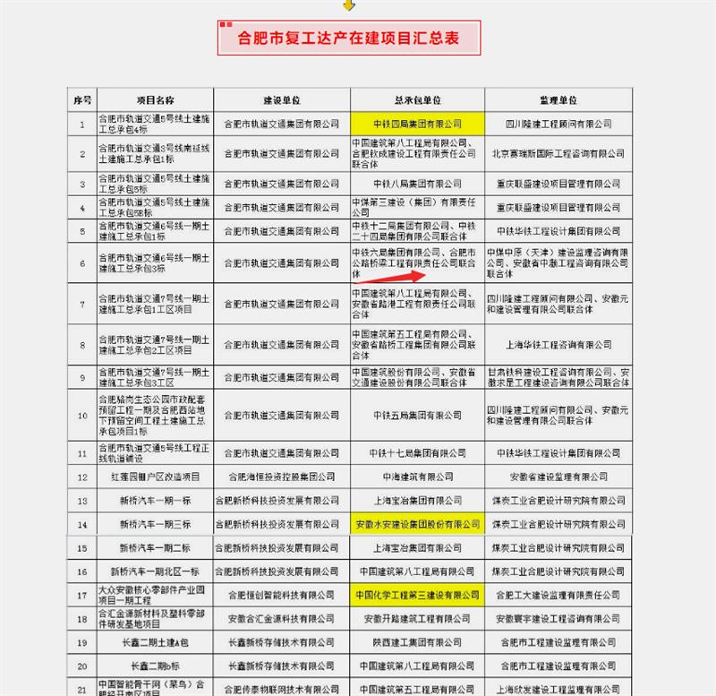 首頁 > 新聞中心 > 詳細(xì)新聞近日,合肥市政府印發(fā)了《關(guān)于對61個復(fù)工達(dá)產(chǎn)在建項(xiàng)目予以表揚(yáng)的通報》,對合肥市軌道交通6號線3標(biāo)段等61個項(xiàng)目予以通報表揚(yáng)。