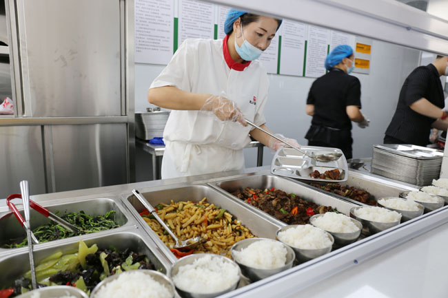 裝修一新的餐廳溫馨整潔、寬敞明亮,廚房廚具干凈衛(wèi)生、各類設(shè)施齊全,可同時容納100余人就餐,由合肥黃山大廈集團(tuán)提供服務(wù)。餐廳為職工提供早、中兩餐。菜品搭配科學(xué)、營養(yǎng)豐富,確保職工“吃的安全、吃的健康”。