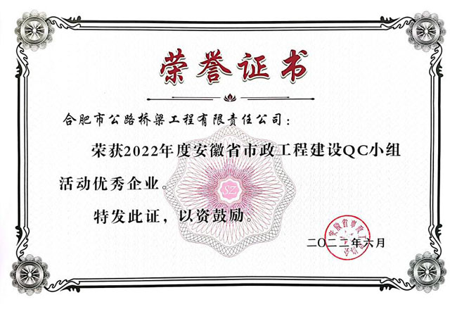 近日,從2022年度安徽省暨合肥市市政工程建設(shè)優(yōu)秀QC小組活動(dòng)成果發(fā)布會(huì)獲悉,合肥路橋QC小組活動(dòng)喜獲諸多佳績(jī)。