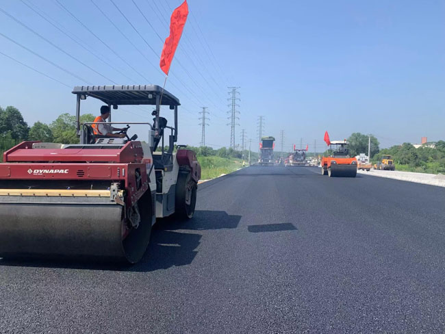 合六南通道合肥段東聯(lián)合肥,西接河南,途徑肥西縣、金安區(qū)、裕安區(qū)、金寨縣等地,沿線分布肥西縣產(chǎn)城融合示范區(qū)、裕安經(jīng)濟(jì)開發(fā)區(qū)等產(chǎn)業(yè)集中區(qū),其中S366合六南通道建設(shè)工程01標(biāo)全長9990米,路面寬度28.5米。施工期間,合肥路橋克服疫情防控影響、持續(xù)高溫天氣和材料供應(yīng)緊張等帶來的諸多困難,歷經(jīng)40天的連續(xù)作業(yè),負(fù)責(zé)路面施工作業(yè)的安徽和路公司順利完成11萬噸混合料的生產(chǎn)以及攤鋪,全線率先完成瀝青路面施工任務(wù),再現(xiàn)了合肥路橋能打“硬仗”,擅打“硬仗”的風(fēng)范。