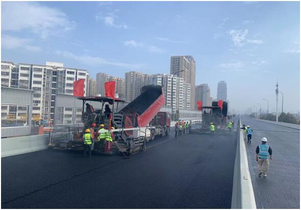 與此同時(shí),金寨路快速化改造4標(biāo)主線橋?yàn)r青攤鋪施工也全部完成,這是合肥路橋全資控股子公司安徽和路科技公司近年來首個(gè)高架橋?yàn)r青路面攤鋪施工。
