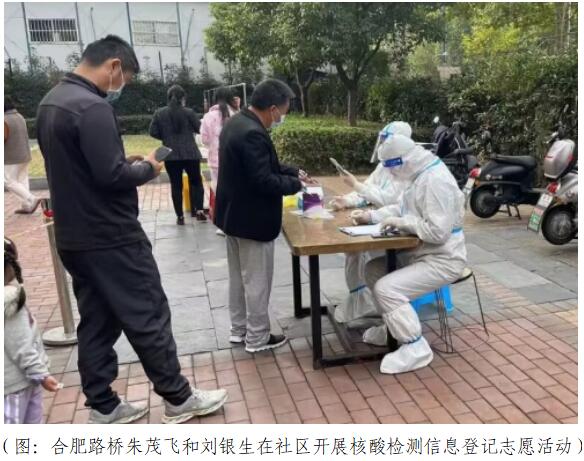 全員參與服務,筑起抗疫長城。身處疫情封控區(qū)域的朱茂飛、劉銀生等人,也積極響應“疫情磨礪初心、旗幟彰顯擔當”號召,就地轉為社區(qū)疫情防控志愿者,換下工作裝,化身“大白”,投身到社區(qū)防疫志愿隊伍工作中去,協(xié)助防疫人員開展排查登記、秩序引導、信息錄入等工作,為所在社區(qū)抗擊疫情添磚加瓦,用實際行動彰顯責任與擔當。