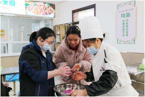 此次活動以“弘揚中國傳統(tǒng)美食——湯圓”為主題,通過美食小課堂的形式展現(xiàn)出來,利用包湯圓的方式來慶祝傳統(tǒng)節(jié)日;顒蝇F(xiàn)場,面點師傅從和面手法到包餡技巧法詳細介紹了湯圓的制作要點,年輕人在老同志的指導下,擼起袖子一起動手和面、調(diào)餡,現(xiàn)場還特地調(diào)制了火龍果汁、菠菜汁、南瓜汁等來增加湯圓的色彩,通過搓、捏、按、團等動作,一個個彩色湯圓映入眼前。