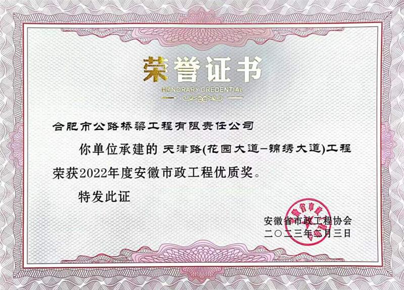 此外,合肥路橋天津路(花園大道-錦繡大道)工程還曾榮獲2022年度合肥市市政工程“廬州杯”獎(jiǎng)等榮譽(yù),這充分展示了合肥路橋優(yōu)秀施工技術(shù)和工藝先進(jìn)水平,以此為契機(jī),合肥路橋?qū)⒃谑姓こ躺铣掷m(xù)發(fā)力深耕,堅(jiān)守匠心、篤定前行,在市政工程領(lǐng)域再創(chuàng)佳績(jī),為安徽省建設(shè)發(fā)展貢獻(xiàn)積極力量。