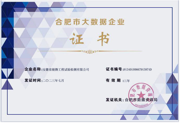 近日,合肥市數(shù)據(jù)資源局組織開展了2023年合肥市大數(shù)據(jù)企業(yè)認(rèn)定工作,合肥路橋所屬子公司駿騰檢測憑借自身綜合實(shí)力及良好的稅收記錄等,成功榮獲“合肥市大數(shù)據(jù)企業(yè)”認(rèn)定。
