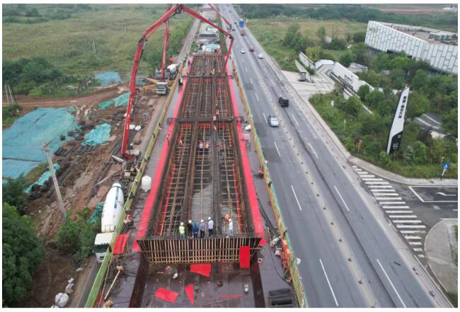 G312合六路(肥西段)首聯(lián)澆筑箱梁位于項(xiàng)目通航大道上跨節(jié)點(diǎn)右幅第一聯(lián),為單箱三室截面,橋跨組合3×30m,混凝土總方量950方,本次底腹板澆筑500余方。為保證首聯(lián)箱梁的順利澆筑,作業(yè)前項(xiàng)目部嚴(yán)格按照技術(shù)批復(fù)方案進(jìn)行交底,同時(shí)對(duì)模板支撐體系、原材質(zhì)量、原材貯備、人力投入等情況進(jìn)行全面檢查,有效保障了箱梁順利澆筑。據(jù)悉,項(xiàng)目部計(jì)劃節(jié)前完成首聯(lián)箱梁頂板澆筑施工。(史常奇)