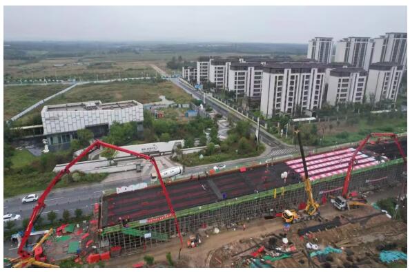 據(jù)悉為確保工程節(jié)點(diǎn)進(jìn)度,項(xiàng)目部采取流水式作業(yè),一聯(lián)頂板澆筑,二聯(lián)底板澆筑,三聯(lián)鋼筋綁扎…環(huán)環(huán)相扣,壓茬推進(jìn)。與此同時,G312 合六路(肥西段)S326、官亭街道、S106下穿隧道的圍護(hù)結(jié)構(gòu)也展開施工。