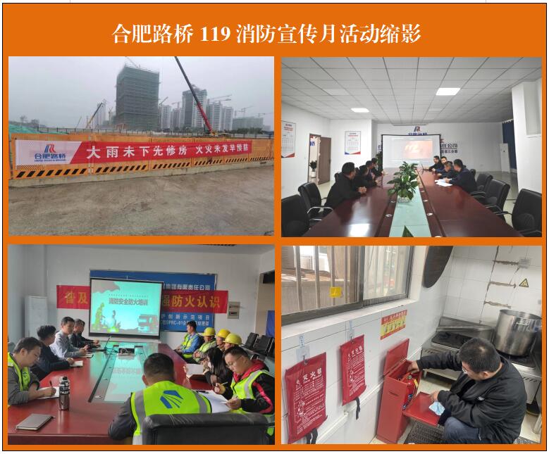 首頁 > 新聞中心 > 詳細(xì)新聞為有效預(yù)防各在建項(xiàng)目火災(zāi)事故的發(fā)生,加強(qiáng)施工現(xiàn)場(chǎng)消防安全管理水平,消除各類火災(zāi)隱患,在全國(guó)第32個(gè)消防宣傳日來臨之際,合肥路橋結(jié)合公司實(shí)際開展了一系列接地氣、見實(shí)效的消防宣傳活動(dòng)。