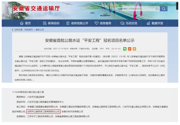 首頁 > 新聞中心 > 詳細新聞近日,安徽省交通廳通報了安徽省首批公路水運“平安工程”冠名項目名單,其中合肥路橋S244羅崗至分路口段公路工程項目名列其中。