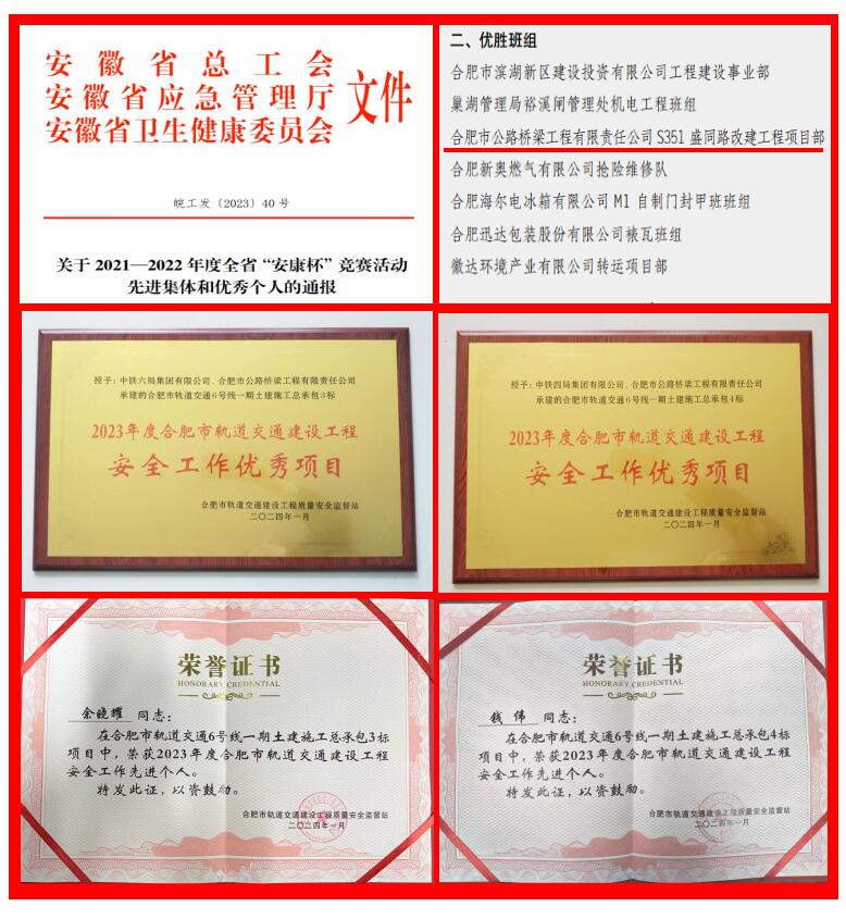 新年伊始,捷報(bào)頻傳,日前從省總工會(huì)、市軌道質(zhì)監(jiān)站獲悉,由合肥路橋承建的 S351盛同路改建工程、軌道交通6號(hào)線一期土建3標(biāo)和4標(biāo)項(xiàng)目接連獲得榮譽(yù)。