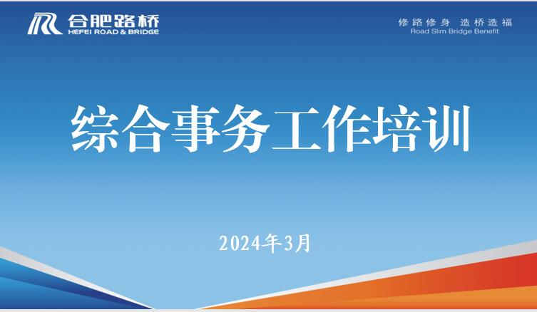 為提升員工綜合辦公業(yè)務(wù)能力,提高企業(yè)管理水平和工作效率,2024年3月19日,合肥路橋組織召開綜合事務(wù)工作培訓(xùn),所屬各部門負(fù)責(zé)人,子(分)公司綜合辦主任及綜合事務(wù)辦公人員40余人參加培訓(xùn)。