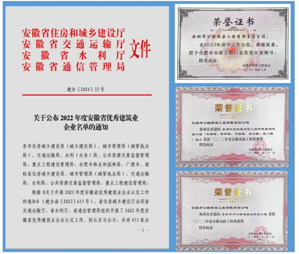 首頁 > 新聞中心 > 詳細(xì)新聞近日,從安徽省住房和城鄉(xiāng)建設(shè)廳、安徽省市政工程協(xié)會傳來喜訊,合肥路橋斬獲“安徽省優(yōu)秀建筑業(yè)企業(yè)”“合肥市市政工程行業(yè)優(yōu)秀企業(yè)”等多項(xiàng)榮譽(yù)。此外,公司承建的巢湖半島人居環(huán)境工程、阜陽市河口路工程榮獲安徽省市政工程優(yōu)質(zhì)獎。