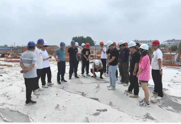 在了解該項(xiàng)目概況、現(xiàn)階段施工部位、關(guān)鍵工藝、建成意義后,全體師生前往項(xiàng)目Y113上跨橋施工現(xiàn)場(chǎng)參觀學(xué)習(xí),為使學(xué)生們對(duì)節(jié)點(diǎn)施工有系統(tǒng)全面的認(rèn)知,項(xiàng)目部還通過(guò)PPT詳細(xì)介紹了Y113上跨橋施工過(guò)程難易程度及控制要點(diǎn)等內(nèi)容。