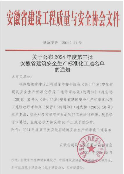 首頁 > 新聞中心 > 詳細(xì)新聞日前獲悉,由合肥路橋承建的合肥市軌道交通6號(hào)線一期土建施工總承包4標(biāo)項(xiàng)目獲評(píng)2024年度第三批安徽省建筑“安全生產(chǎn)標(biāo)準(zhǔn)化工地”。