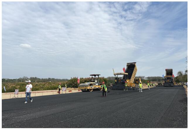 據(jù)了解,此次攤鋪的主線路面底基層水泥試驗(yàn)段長(zhǎng)200m,寬16.48m。為確保攤鋪工作的順利進(jìn)行,項(xiàng)目施工方提前組織謀劃,優(yōu)化資源配置,嚴(yán)格控制水泥穩(wěn)定碎石混合料的拌合、運(yùn)輸、攤鋪、碾壓、檢測(cè)等各個(gè)環(huán)節(jié),鋪筑過(guò)程中各類機(jī)械設(shè)備緊密配合,現(xiàn)場(chǎng)管理人員對(duì)松鋪系數(shù)、碾壓遍數(shù)、攤鋪厚度進(jìn)行嚴(yán)格控制并全過(guò)程檢查記錄,施工現(xiàn)場(chǎng)井然有序,攤鋪過(guò)程進(jìn)展順利。