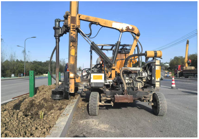 首頁(yè) > 新聞中心 > 詳細(xì)新聞近日,在G312合六路(肥西段)快速化改造工程中分帶防撞護(hù)欄施工現(xiàn)場(chǎng),一款“吸塵器”鉆孔機(jī)進(jìn)入大家視野,隨著旋鉆頭的落下,沒(méi)有傳統(tǒng)施工的灰塵撲撲,這就是該項(xiàng)目最新引進(jìn)的打樁“神器”——集護(hù)欄立柱打樁、鉆孔、粉塵回收等多功能為一體的多功能防撞護(hù)欄立柱打樁機(jī)。