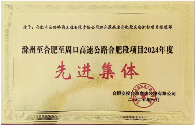 日前,滁合周高速公路合肥段建設(shè)項目2024年度總結(jié)會暨表彰大會順利召開,合肥路橋滁合周高速合肥段交安01標(biāo)項目經(jīng)理部被授予2024年度“先進(jìn)集體”榮譽稱號。