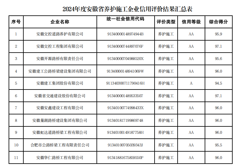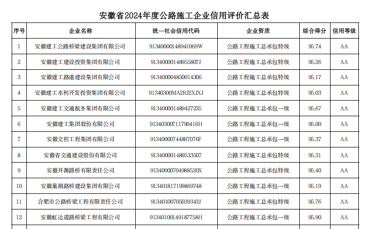 近日,安徽省交通運輸廳公布2024年度全省公路水運工程信用評價結(jié)果,合肥路橋憑借在公路施工與養(yǎng)護施工領(lǐng)域的出色表現(xiàn),同時斬獲公路施工企業(yè)與養(yǎng)護施工企業(yè)信用評價雙AA級榮譽。