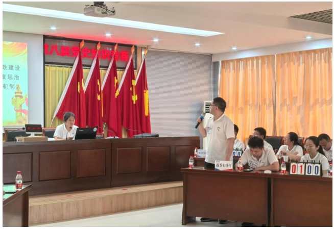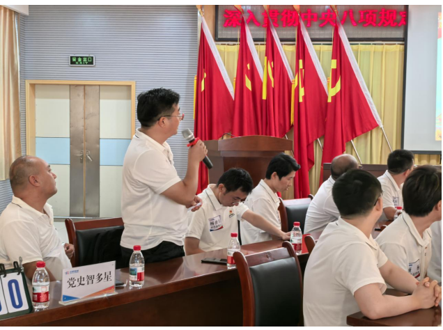 比賽過程中,6支黨支部代表隊,24名參賽選手以飽滿的熱情投入到這場知識的比拼之中,F(xiàn)場氣氛熱烈非凡,各參賽隊伍精神抖擻、斗志昂揚(yáng),踴躍作答,充分展現(xiàn)出扎實深厚的黨史知識功底。