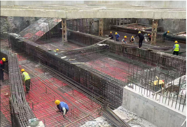 該項目地處合肥市瑤海區(qū)核心區(qū)域,周邊交通密集、桿管線錯綜復(fù)雜,據(jù)悉該項目主體結(jié)構(gòu)于2024年9月30日封頂,期間2號風(fēng)亭因中高考桿線遷改延期30余天,4號出入口暗挖段因上方高壓電纜標(biāo)高設(shè)計變更工期延期60余天,項目工期滯后嚴(yán)重。為搶工期、保進(jìn)度,合肥路橋軌道建設(shè)團(tuán)隊迎難而上、奮起直追,采取一系列攻堅舉措:強化資源配置,增配施工班組、機械設(shè)備及材料儲備;實施進(jìn)度激勵機制,全面提升作業(yè)效能;制定“日調(diào)度、周通報”制度,細(xì)化工序管控,全面推進(jìn)施工進(jìn)度。