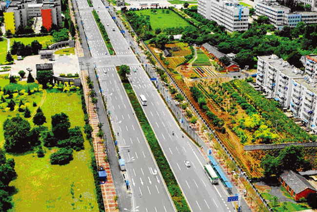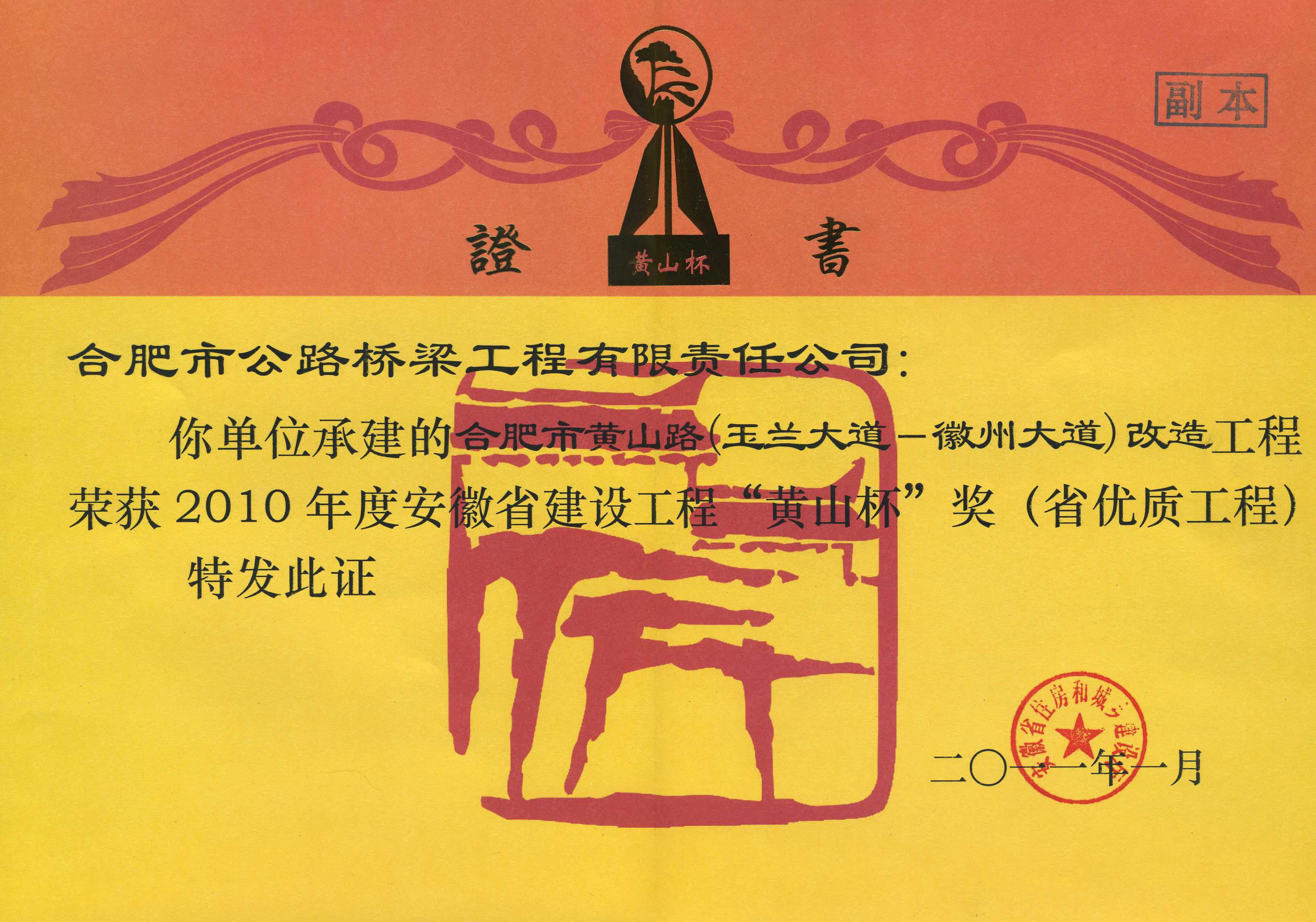 黃山路位于合肥市核心區(qū)南部,西起玉蘭大道東至徽州大道,是合肥市東西向重要交通通道,是連接老城區(qū)和高新開發(fā)區(qū)及大蜀山風(fēng)景區(qū)的重要通道,是合肥市“141”發(fā)展戰(zhàn)略實施的一部分。道路全長9.08KM,雙向8車道,為城市I級主干道,全線與23條道路相交。該項目建設(shè)中采用了砼板塊破碎再生水穩(wěn)與砼板塊壓漿技術(shù),有效解決了舊混凝土廢料處理問題,大大減少工程量,縮短了施工工期,降低了生產(chǎn)成本。該項目榮獲了安徽省建設(shè)工程“黃山杯”獎(省優(yōu)質(zhì)工程)