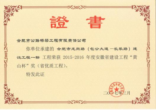 該項(xiàng)工程榮獲了安徽省建設(shè)工程“黃山杯”獎(jiǎng)(省優(yōu)質(zhì)工程)。