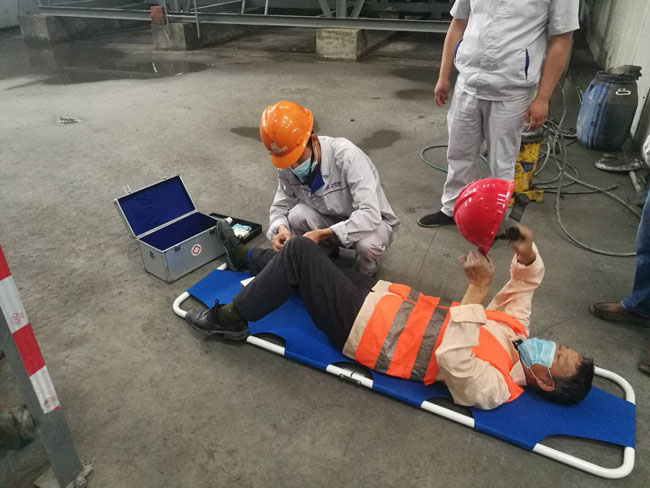 事件模擬真實(shí)事故,一名維修工人在對(duì)設(shè)備保養(yǎng)時(shí)不慎從滾筒平臺(tái)滑落,造成腿部受傷,隨后拌和站負(fù)責(zé)人緊急啟動(dòng)安全事故應(yīng)急預(yù)案,把傷者送醫(yī)救治。演練現(xiàn)場(chǎng),作業(yè)人員熟練掌握應(yīng)急救援運(yùn)行的程序和方法,在了解和掌握了發(fā)生事故后及時(shí)上報(bào)情況,各責(zé)任組配合密切,各個(gè)環(huán)節(jié),流程銜接順利,協(xié)調(diào)組織有序,物資到位及時(shí)。