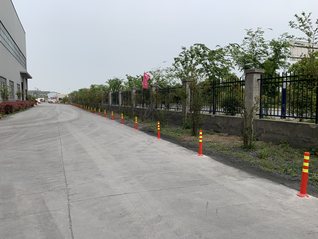 除此之外,為提高嚴店應急養(yǎng)護中心交通安全,加強養(yǎng)護中心員工交通安全防范意識,嚴店基地在行車道綠化帶旁安裝了警示柱,確保車輛行車安全。