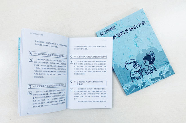 該手冊(cè)有A4紙六分之一大小,攜帶輕便,涉及問(wèn)題多達(dá)100個(gè),覆蓋面廣、知識(shí)點(diǎn)新、實(shí)用性強(qiáng)。涵蓋基礎(chǔ)篇病毒知識(shí)、個(gè)人篇防護(hù)、疫苗接種以及居家篇科學(xué)鍛煉、心理調(diào)適和外出篇出行防護(hù)四大版塊。