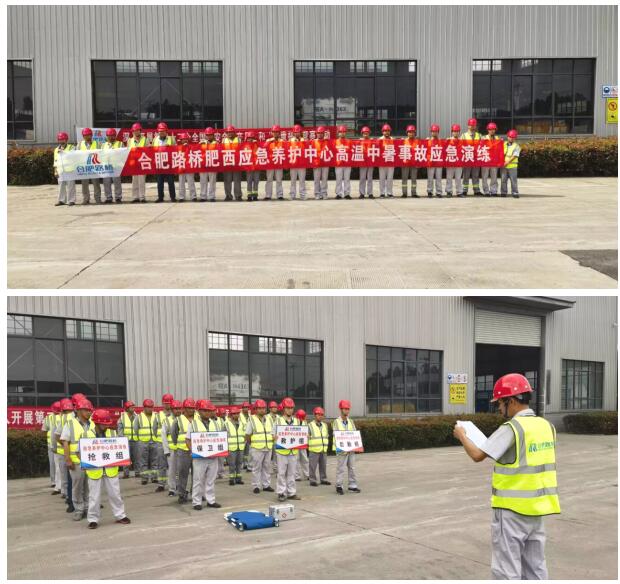 為積極開展第22個“安全生產(chǎn)月”活動,扎實有效地做好安全生產(chǎn)及項目施工,近日,合肥路橋應急養(yǎng)護中心在嚴店基地拌合站開展了高溫中暑事故應急救援演練,公司安全管理部負責人田雷到場指導。