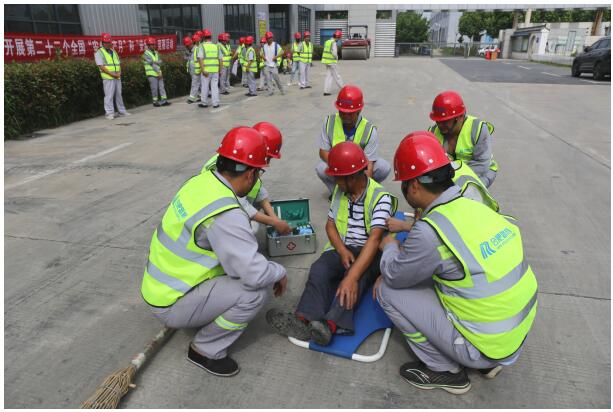 活動首先,指揮長向全體人員普及了高溫應急救援知識,在工作人員明確各自工作職責及注意事項后演練正式拉開序幕。演練模擬了一名現(xiàn)場環(huán)衛(wèi)人員在作業(yè)過程中,由于高溫中暑的緊急處理過程,各小組分工協(xié)作、密切配合、反應迅速,全面展示了事故上報、搶險救援、醫(yī)療救護等各個環(huán)節(jié),通過演練切實提高全員安全生產(chǎn)意識,確保做到“人人講安全 個個會應急”。