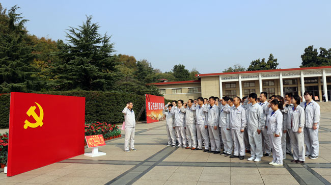 在講解員的帶領(lǐng)下,黨員們走進(jìn)安徽革命烈士事跡陳列館,這里陳列著全省有代表性的從第一、第二次國內(nèi)革命戰(zhàn)爭時期至社會主義建設(shè)時期的190位烈士的光輝業(yè)績,存有450幅圖畫及烈士手抄、名人字畫、領(lǐng)導(dǎo)題詞等,還有全省各地縣的烈士英名錄。同志們認(rèn)真聽取講解員的講解,保持肅靜,仔細(xì)觀看,不時駐足停留。一段段感人的故事,一條條鮮活的生命,憑著對祖國的一腔熱血,結(jié)束了不凡的一生。鮮艷的黨旗沐浴著陽光,黨員們統(tǒng)一著裝,佩戴黨徽,高舉右手,重溫入黨誓詞?嚯y造就偉大,我們勢必不辜負(fù)最初的信念,與時俱進(jìn),恪守承諾,堅(jiān)持崇高的理想。