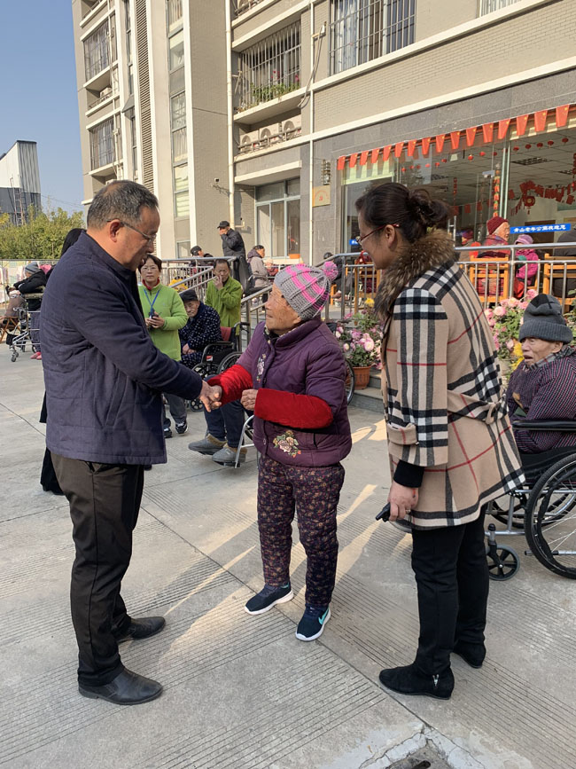 青山老年公寓是由包河區(qū)民政局批準(zhǔn)成立的老年福利機(jī)構(gòu),為老人提供集托老、養(yǎng)老、娛樂、心理關(guān)懷等服務(wù)。在管理員的帶領(lǐng)下,我們依次參觀了老人們居住的宿舍,休閑活動區(qū)和公寓食堂,房間內(nèi)光線充足,整潔干凈;顒訁^(qū)的老人們有的在打牌,有的在院子里曬陽光,有的坐在輪椅上不言語,也許是看著冬日里盛開的鮮花和依然蔥郁的葉子。臨走時(shí),一位九十二歲的老人和楊總親切的交談,閑話家常。九十二歲的高齡,白發(fā)滄桑,身體依舊硬朗,緩緩的把我們送到大門口。