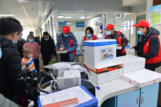 4日上午,合肥路橋交通軌道6號線項目部志愿者們一早便開始了忙碌,買菜、擇菜、烹飪、裝箱,上午11:10分,42份熱騰騰的飯菜準(zhǔn)時送達(dá)了安醫(yī)二附院。在安徽善之源兒童保護(hù)部主任、合肥路橋?qū)W雷鋒志愿服務(wù)隊張燕同志的帶領(lǐng)下,李曉磊、等3名志愿者帶著42份美味可口的飯菜和橙果樹美育機構(gòu)捐贈的水果走進(jìn)醫(yī)院8號樓為患兒們送上新年的祝福。