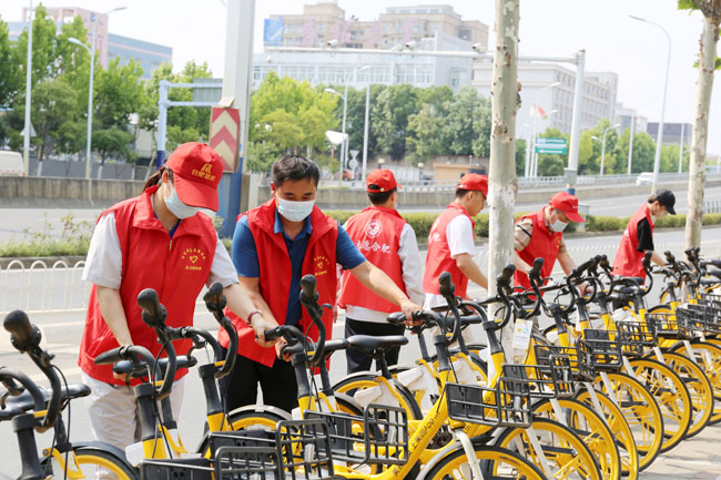 共享單車給群眾帶來出行方便,節(jié)約行程時間。但隨之而來的,也存在胡亂擺放、亂占道等不文明現(xiàn)象,既妨礙交通,也影響了城市的環(huán)境秩序與文明形象。志愿者對占壓盲道、綠化帶、人行道等違規(guī)停放的車輛,按照“集中停放、擺放有序、朝向一致”的原則,重新進(jìn)行規(guī)范擺放,切實維護(hù)共享單車的 停車秩序, 并向過往行人積極宣傳文明行車,有序停放的重要意義。